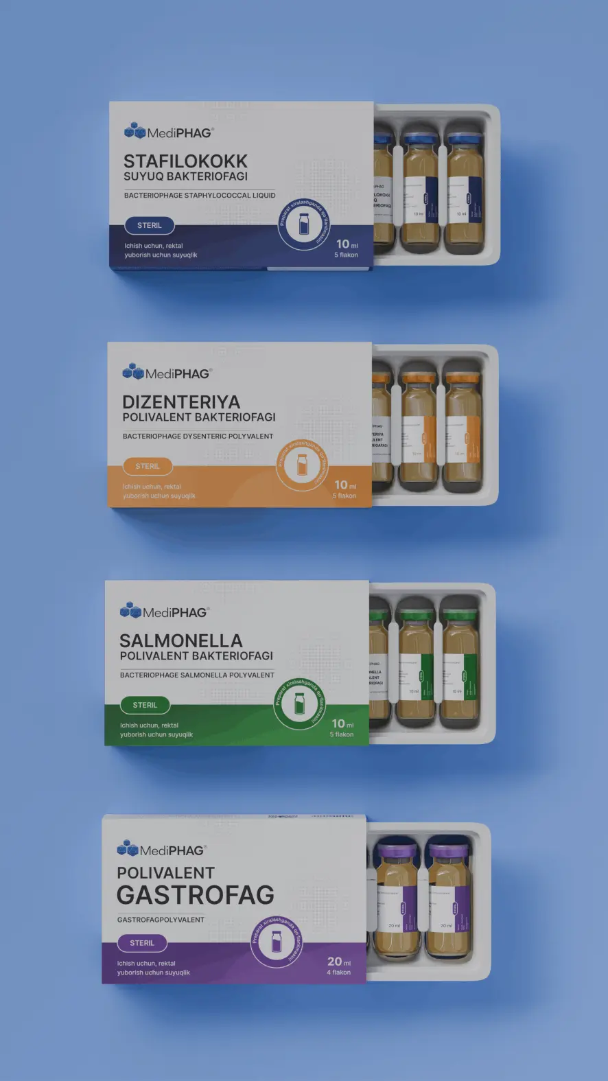 На сегодняшний день OOO «Aziya immunopreparat» производит моно и поливалентные бактериофаги против инфекционных заболеваний человека.